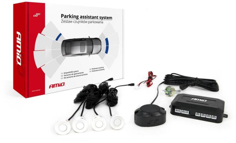 AMiO Tolatóradar Hangjelzéssel 4 Darab Fehér 22 mm-es Szenzorral