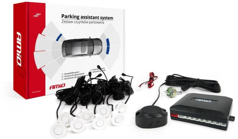 AMiO Tolatóradar Hangjelzéssel 8 Darab Fehér 22 mm-es Szenzorral